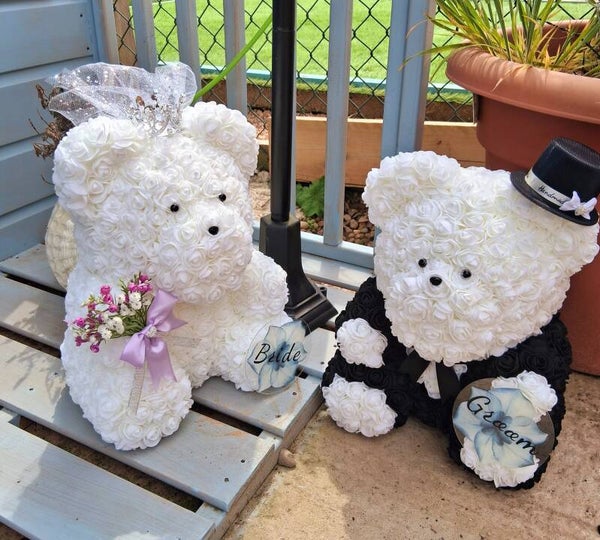 This stunning duo make a unique addition to any wedding day, wether purchasing as a gift for the couple or as unique decor to the wedding display these Bears are sure to have people talking and also act as a reminder of the most special day in a couples journey, each bear can be personally decorated to mirror the individuals colour scheme.