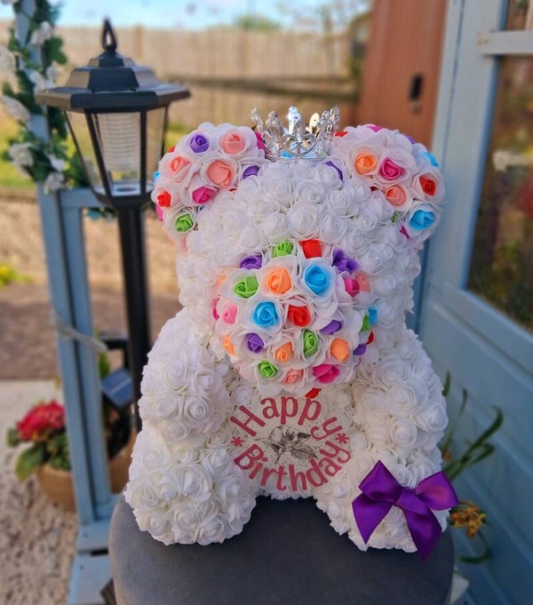 Theses stunning hand decorated bears are the perfect gifts for any occassion wether birthdays, Christmas or Bridesmaid gift they are a unique bespoke gift for any one.