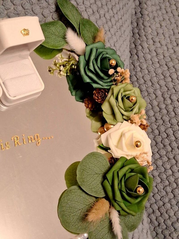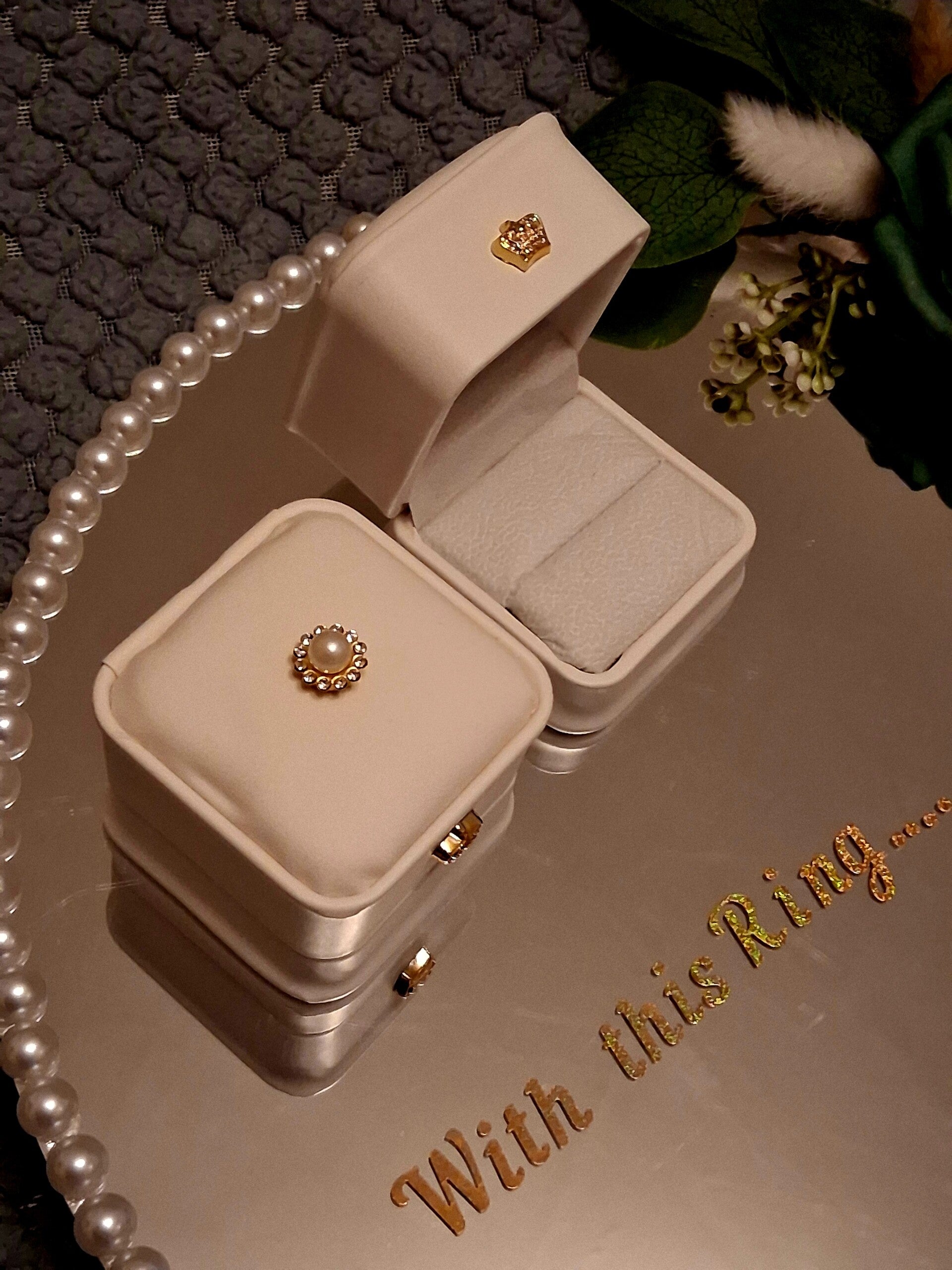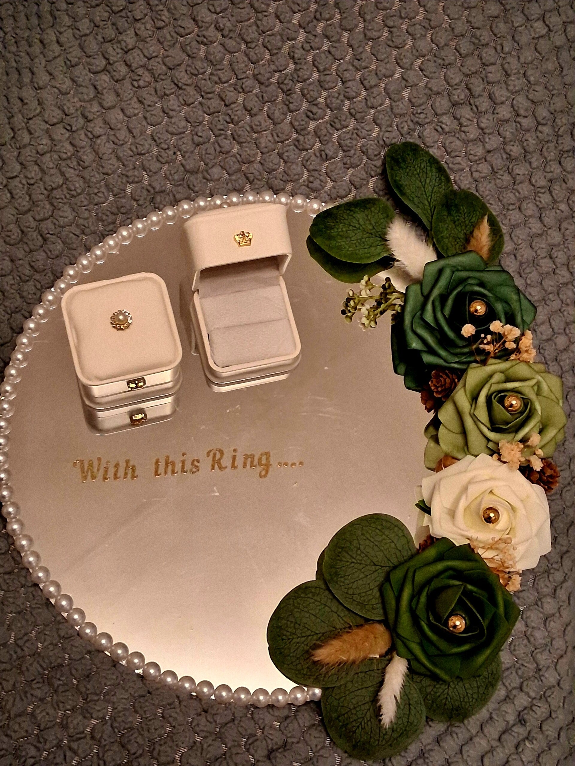 Beautiful addition to any wedding decor this stunning mirrored plate is the perfect way to display your rings at your ceramony, The plate can be personalised with either a verse or your names and date, any theme catered for, just drop us a message with your ideas.